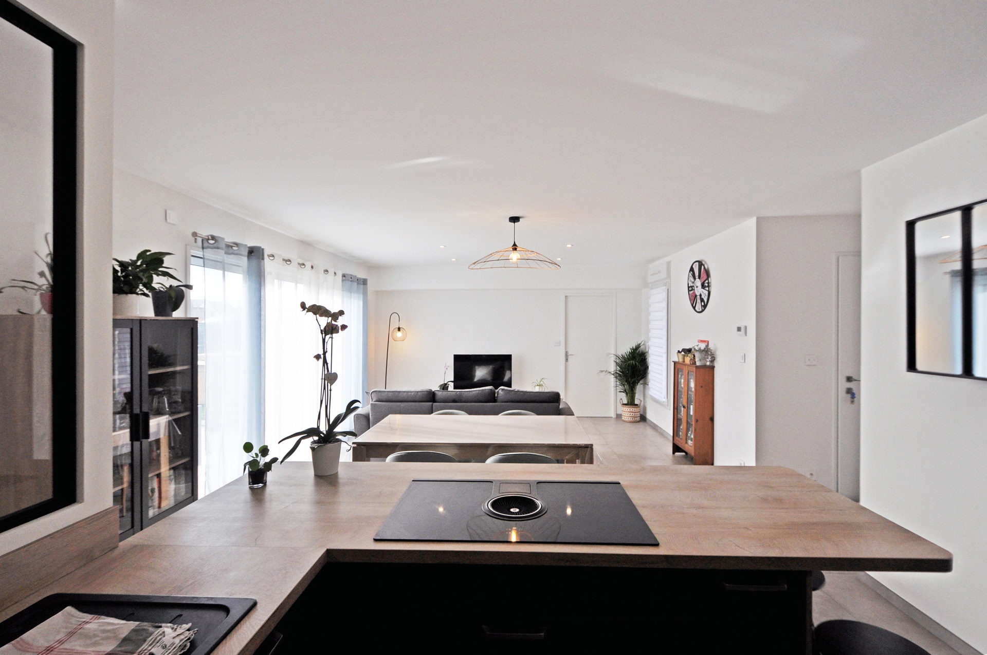 Ce projet de construction d’une habitation se situe sur la commune de Montjean-sur-Loire. Pour rythmer les façades nous avons créé un décalage des deux volumes imbriqués côté rue. Le projet est implanté en limite de propriété au Nord et parallèlement à la rue pour protéger le jardin des flux. Cela permet aussi de profiter d’une très bonne exposition et d’apporter un maximum de lumière dans les espaces de vie, tout en créant une relation privilégiée entre l’intérieur et l’extérieur. Un porche vient largement marquer l’entrée. Enfin, à l’intérieur nous retrouvons trois espaces distincts avec les pièces de vie au centre et de part et d’autre l’espace enfants et la suite parentale.